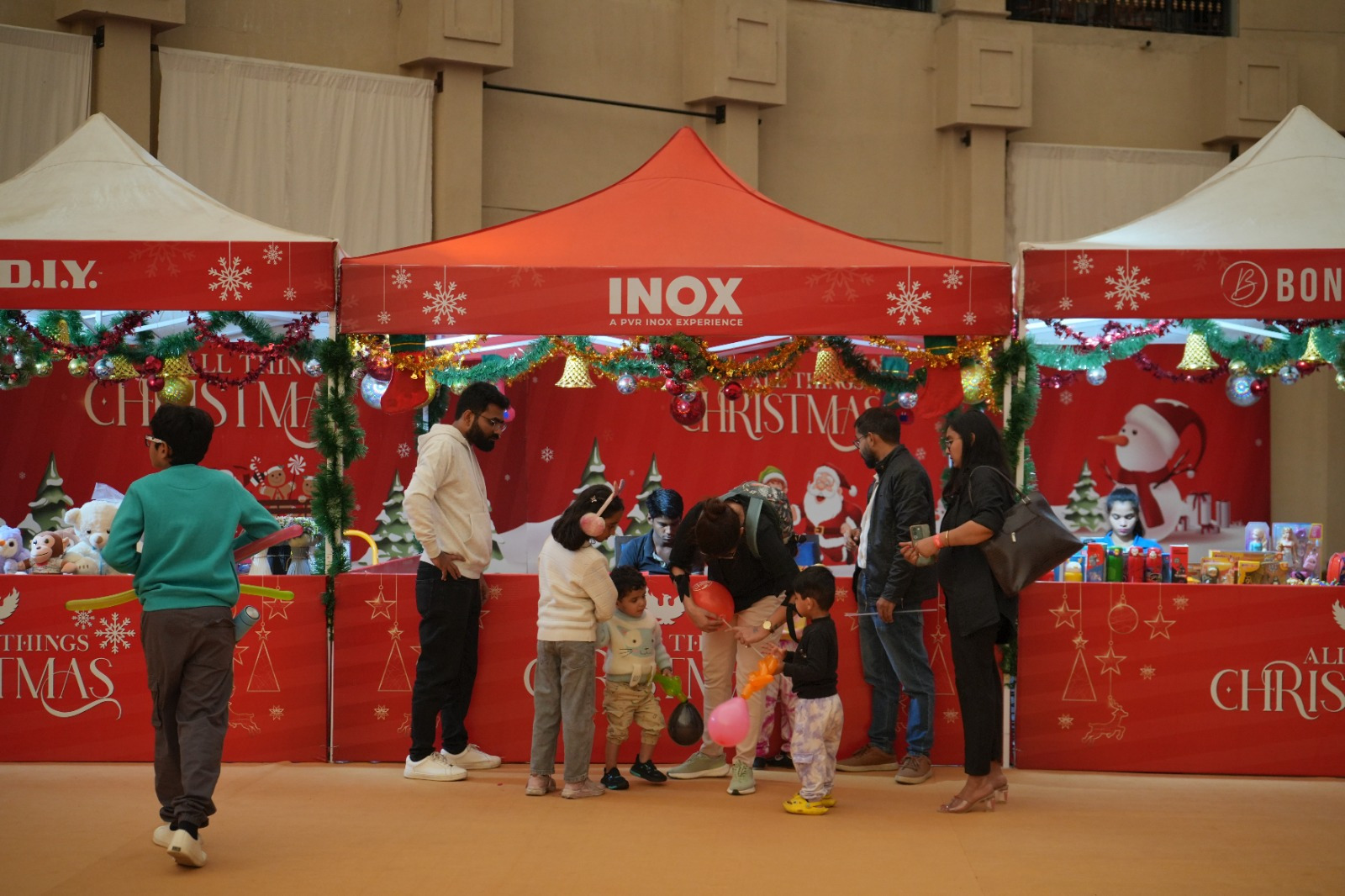 • मॉल की भव्य सजावट, रोशनी, और विशाल क्रिसमस ट्री।