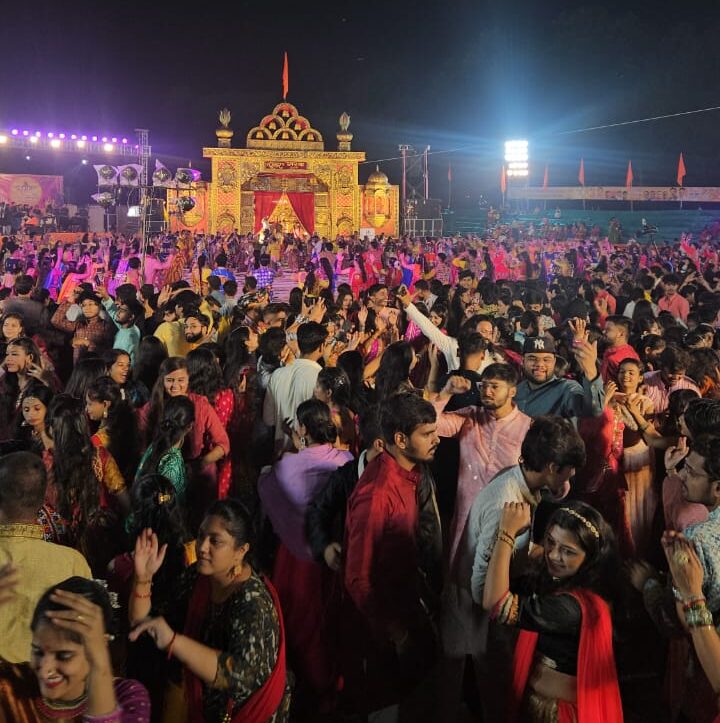 इंदौर. डांडिया की खनक… चूड़ियों और पायलों की छनक… मां की आराधना में सराबोर भक्त… पारंपरिक परिधानों में सजे गरबा प्रेमी मंच को कर रहे रंगीन… बच्चों से लेकर बुजुर्गों तक में गरबा खेलने का उत्साह यह नजारा इन दिनों लालबाग पैलेस में आयोजित ‘घूमर’ गरबा महोत्सव में हर रोज देखने को मिल रहा है। यह महोत्सव भारतीय जनता युवा मोर्चा के अध्यक्ष व आयोजक सौगत मिश्रा के नेतृत्व में किया जा रहा है।
