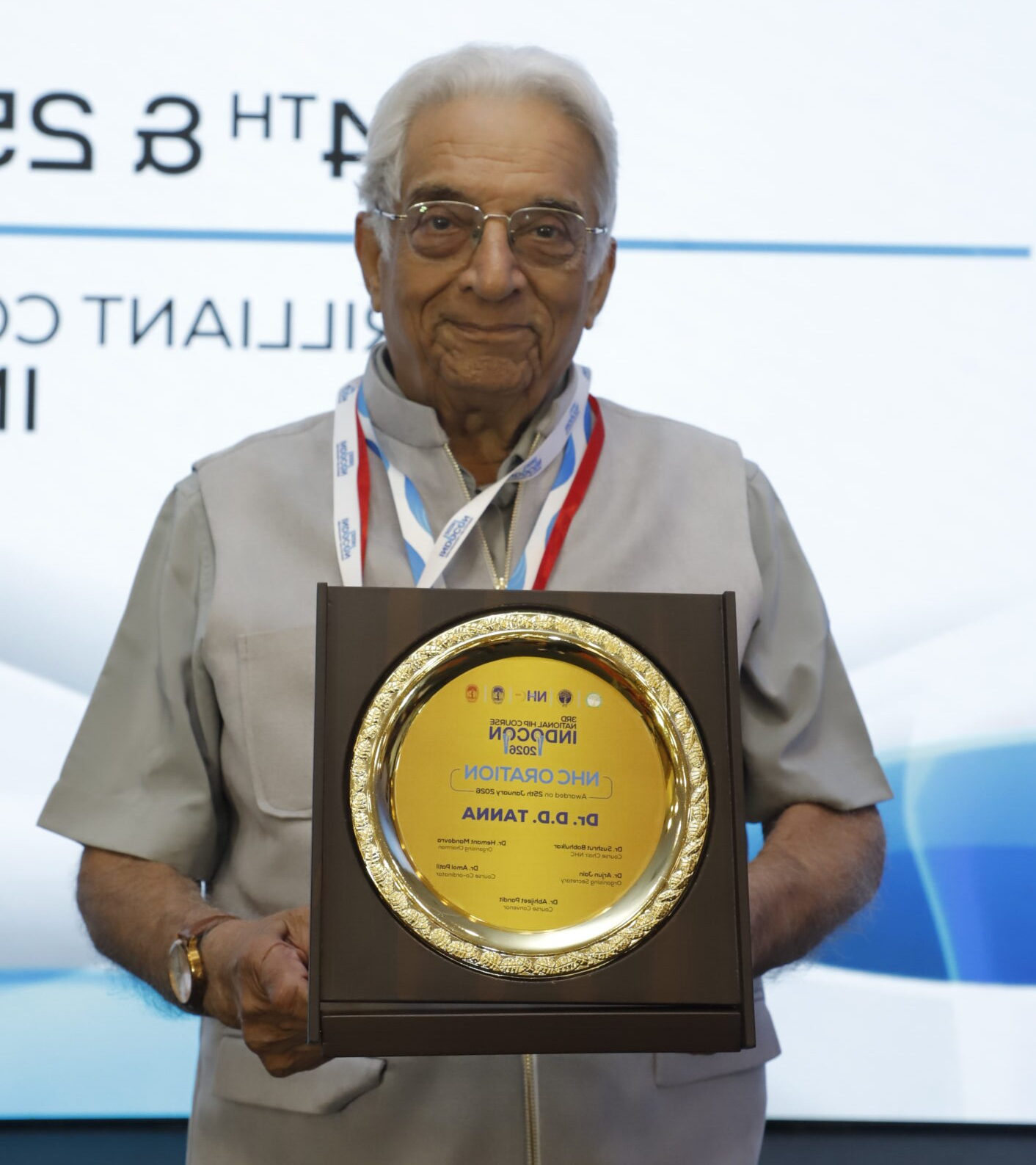 इंडोकॉन 2026  का आकर्षण वरिष्ठ ऑर्थोपेडिक सर्जन डॉ. डी.डी. तन्ना को दिया गया एनएचसी-इंडोकॉन ओरेशन सम्मान रहा। डॉ. डी.के. तनेजा की उपस्थिति में आयोजन समिति ने उन्हें सम्मानित किया।