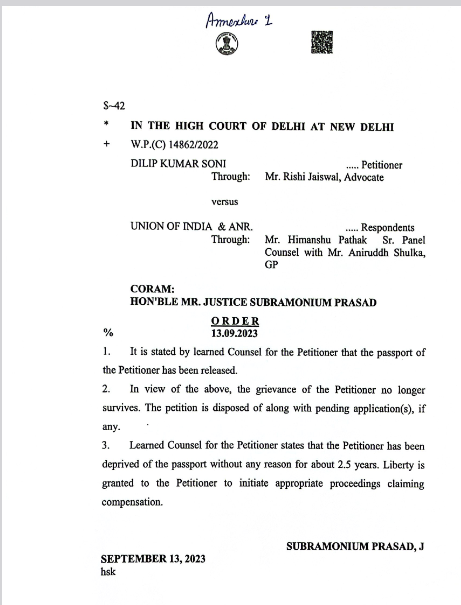 सोनी ने पासपोर्ट विभाग में जमानत के कागज़ जमा किए और पासपोर्ट अनब्लॉक करने की गुजारिश की। कानूनन पासपोर्ट विभाग के पास ऐसा कोई अधिकार नहीं है कि समन के खिलाफ पासपोर्ट ‘जब्त’ किया जाए। लेकिन पासपोर्ट विभाग ने सोनी की एक ना सुनी। पासपोर्ट विभाग ने बिना किसी वैध कारण के सोनी का पासपोर्ट ब्लॉक कर दिया। यह कदम अवैध था, क्योंकि विभाग के पास ऐसा करने का कोई अधिकार नहीं था। इस कारण, सोनी अमेरिका नहीं जा सके, जहां उनका मुख्य व्यवसाय था।