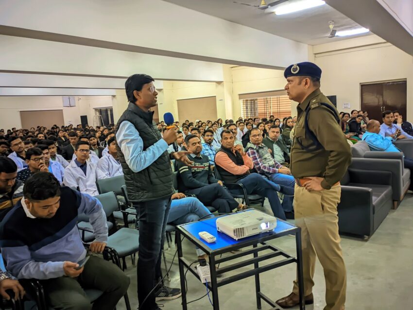 सायबर अवेयरनेस के तहत शुभदीप आर्युवेदिक मेडिकल कॉलेज एंड हॉस्पिटल इंदौर में आयोजित कार्यक्रम में एडीशनल डीसीपी क्राइम श्री राजेश दंडोतिया ने, 335वीं कार्यशाला में मेडिकल कॉलेज के डॉक्टर्स, स्टूडेंट व मैनेजमेंट स्टाफ के करीब 400 लोगों को वर्तमान समय के साइबर अपराधों के प्रकारों और इनसे बचने के तरीकों की जानकारी देते हुए, पुलिस के पास आने वाली साइबर अपराधों की शिकायतों की केस स्टडी के आधार पर, विभिन्न प्रकार के साइबर फ्रॉड, फाइनेंशियल फ्रॉड के साथ ही सोशल मीडिया से संबंधित साइबर क्राइम आदि के बारे में विस्तृत रूप से बताते हुए, साइबर अपराध होने पर हेल्पलाइन-1930, cybercime.gov.in तथा इंदौर पुलिस की साइबर हेल्पलाइन 704912445 आदि पर किस प्रकार शिकायत करें तथा पुलिस इन पर किस प्रकार कार्यवाही करती है और साइबर अपराधों से बचने के लिए किन बातों का ध्यान रखें आदि के संबंध में प्रैक्टिकली समझाया।