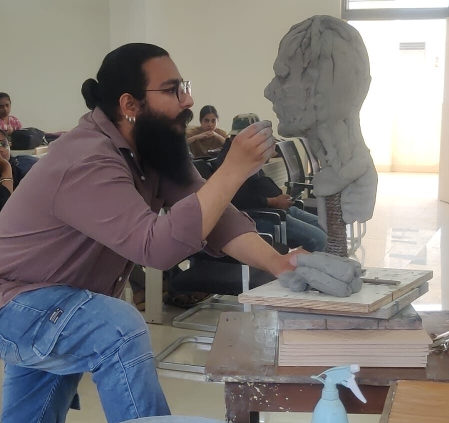 प्रोफेसर सोनी ने लाइव मॉडल पर मिट्टी से मूर्ति निर्माण करते हुए अपनी कड़ी मेहनत, सृजनात्मकता और एकाग्रता का परिचय दिया। ऑनलाइन और ऑफलाइन दोनों माध्यमों से जुड़े प्रतिभागी उनकी कलात्मक प्रस्तुति को देखकर आश्चर्यचकित रह गए।