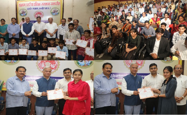 इंदौर। प्रीतमलाल दुआ सभागृह में विद्यार्थियों के सम्मान समारोह का आयोजन किया गया। संभागायुक्त दीपक सिंह व जिला पंचायत अधिकारी सिद्धार्थ जैन ने संभाग के विभिन्न जिलों के हाई स्कूल व हायर सेकेंडरी स्कूल की प्रथम प्रावीण्य सूची में स्थान प्राप्त करने वाले और जेईई व नीट परीक्षा में चयनित शासकीय विद्यालयों के विद्यार्थियों सम्मान किया।